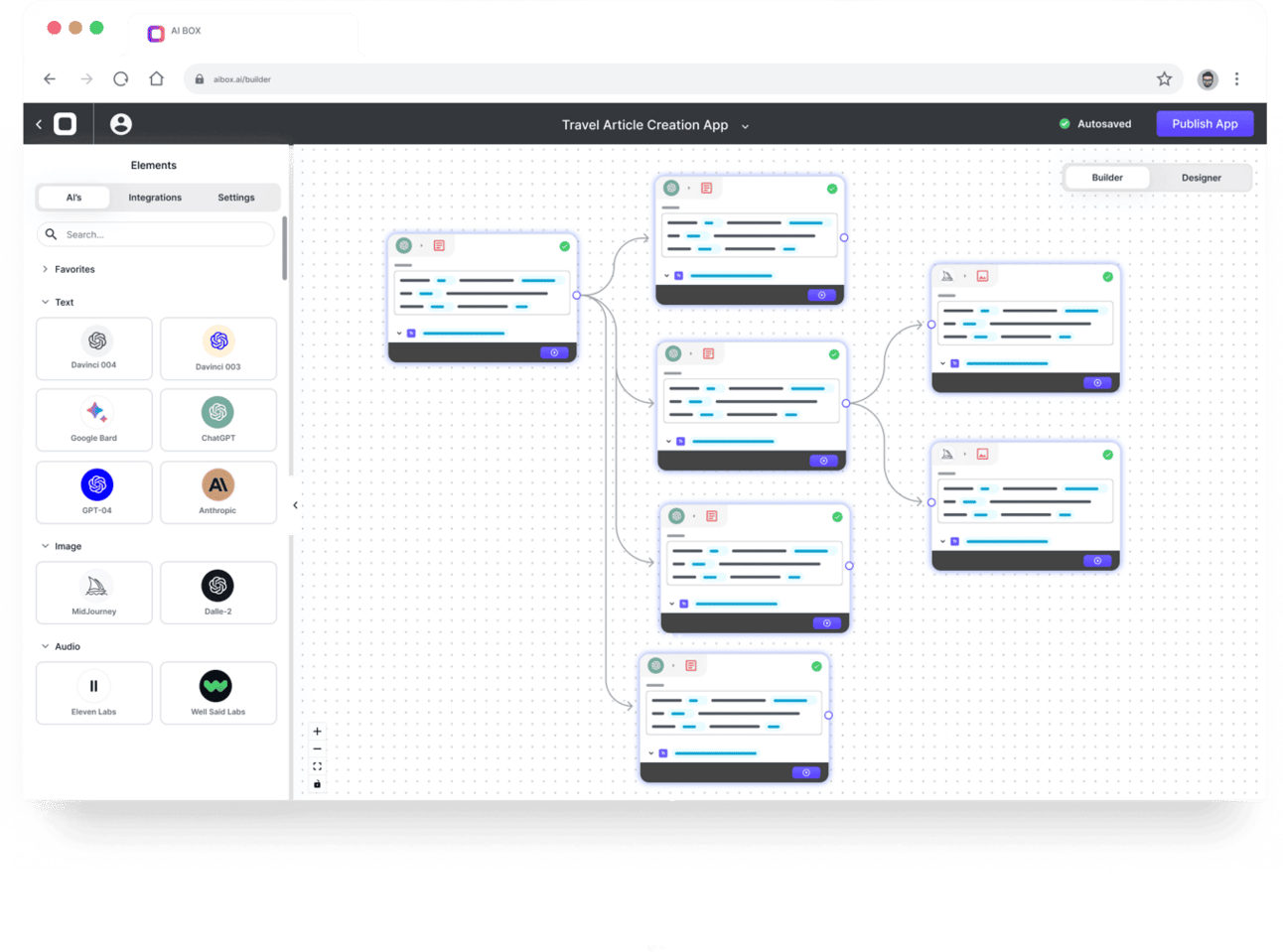 The platform lets you build apps by linking together hundreds of AI models like ChatGPT, MidJourney, and Eleven Labs. Eventually we’ll integrate software like Gmail, Trello and Salesforce so you can use AI to automate every function within your organization.